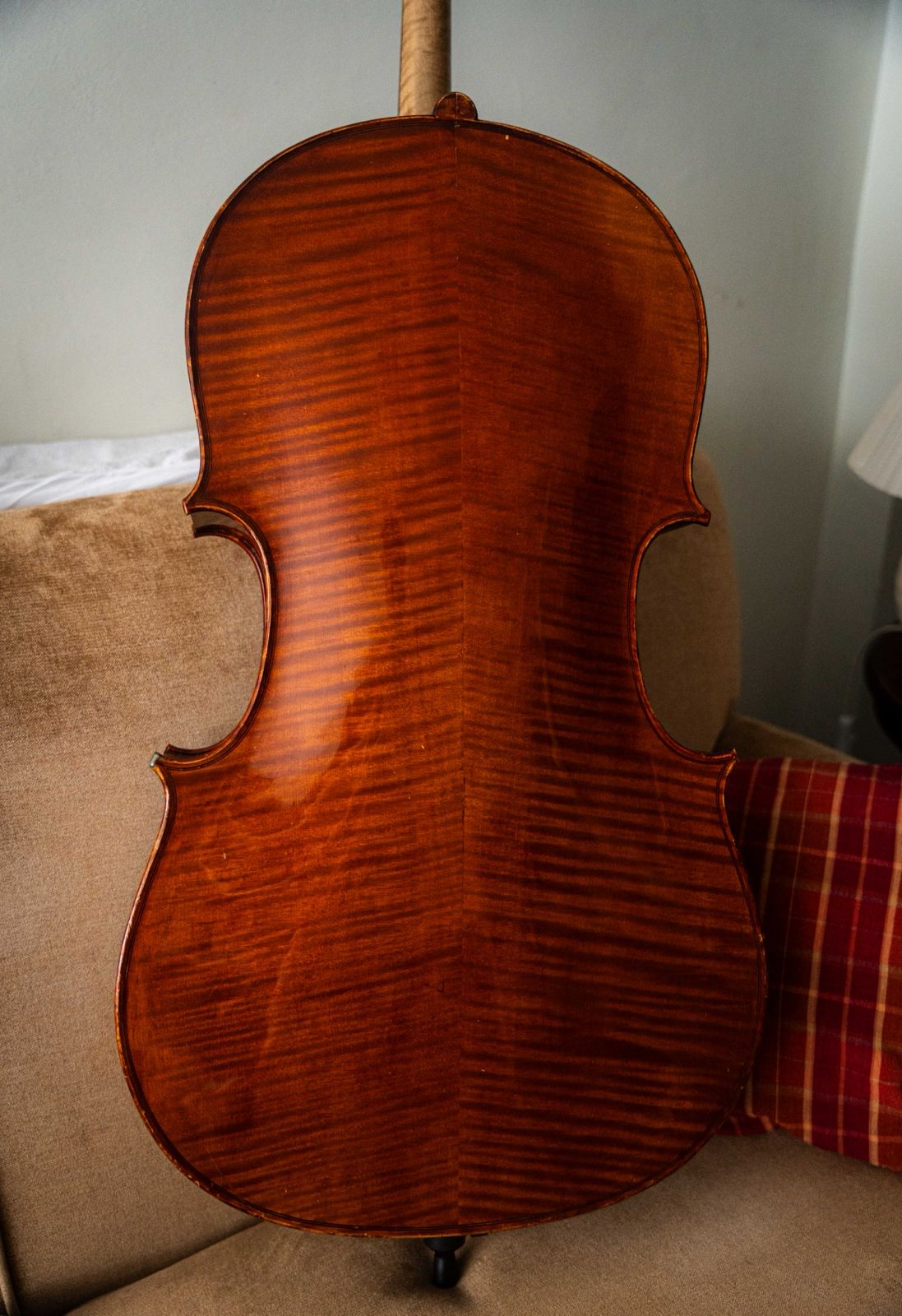 Violonchelo 4/4, de 1998 con certificado, línea Montagnana, para enseñanzas profesionales y superiores. Está en perfecto estado, sin ningún problema. El certificado que tiene lo tasa en 4.000 €, el cual se entrega. Se le han hecho arreglos: puente nuevo híbrido belga-francés, nuevo cordal, pica nueva de fibra de carbono, y se le ha ajustado un alma nueva. Hace apenas unos meses le he cambiado un juego de cuerdas nuevas valorado en 300 €, del que tengo factura y puedo mostrar. Lleva en Sol y Do Spirocore Wolframio, y en la La y Re, Larsen Magnacore.