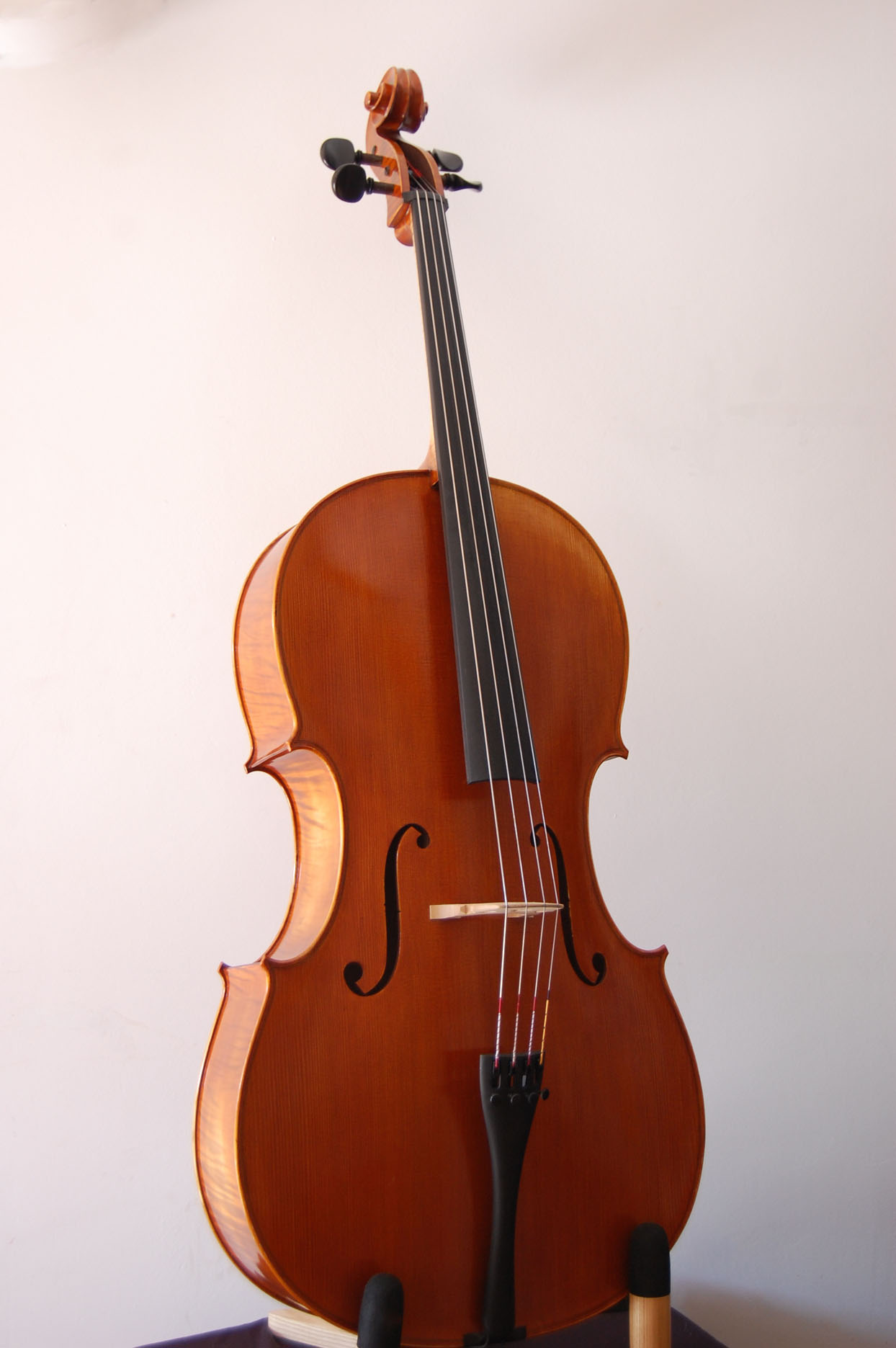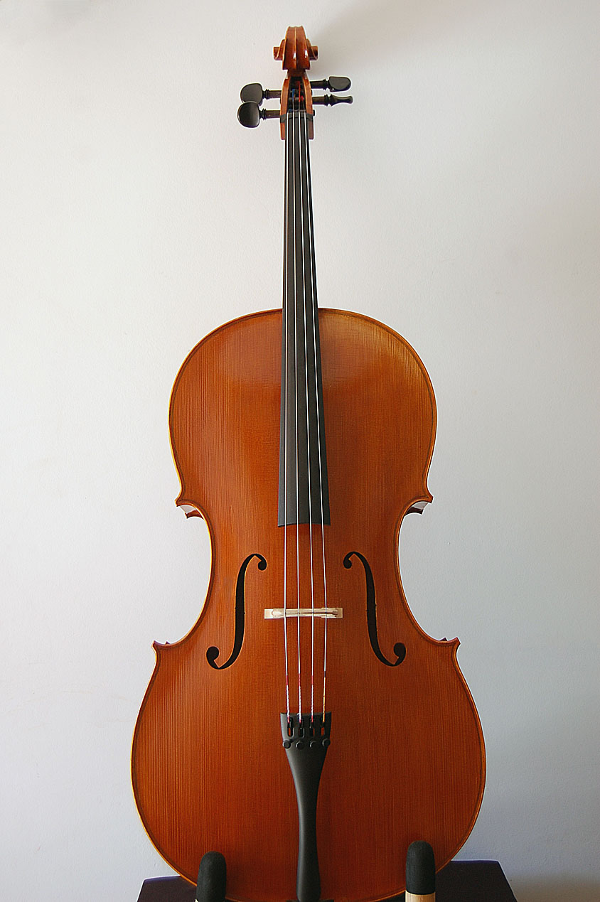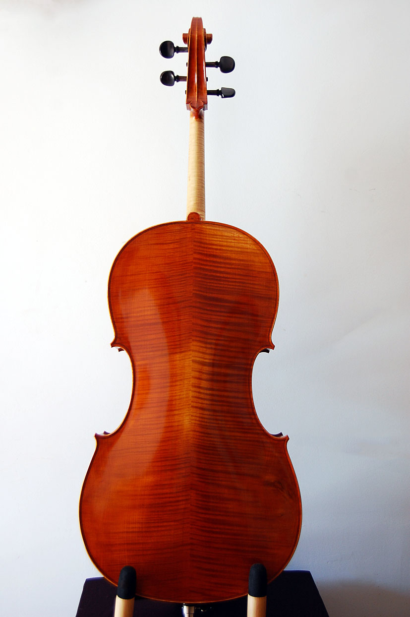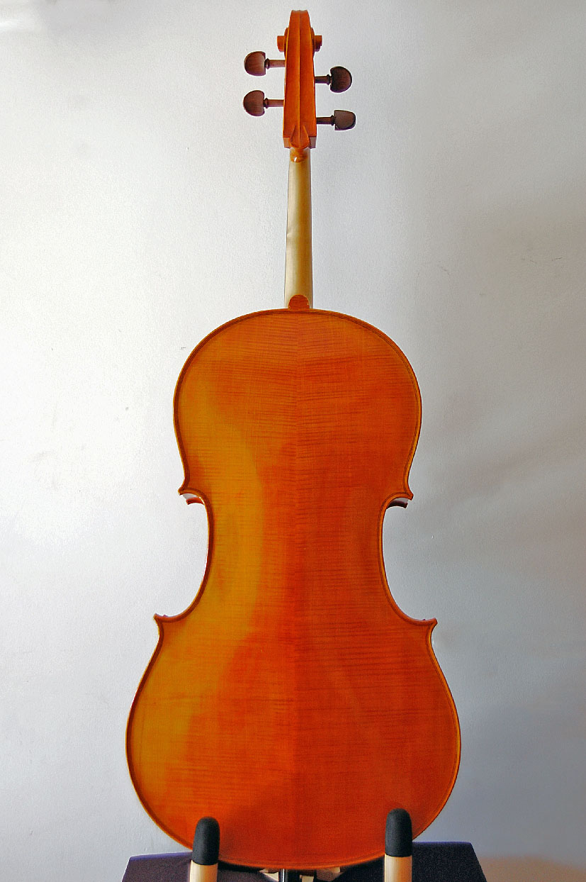 Barniz: natural, no envejecido. Tonos marrones o rojizos de un barniz limpio y homogéneo. Las fotos del catálogo son de referencia ya que cada violoncello es diferente.